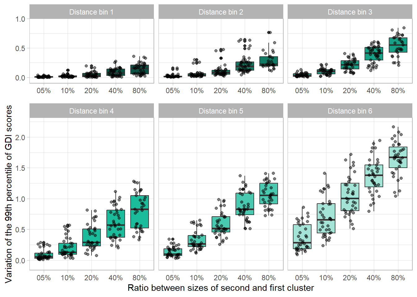 y = "Variation of the 99th percentile of GDI scores"