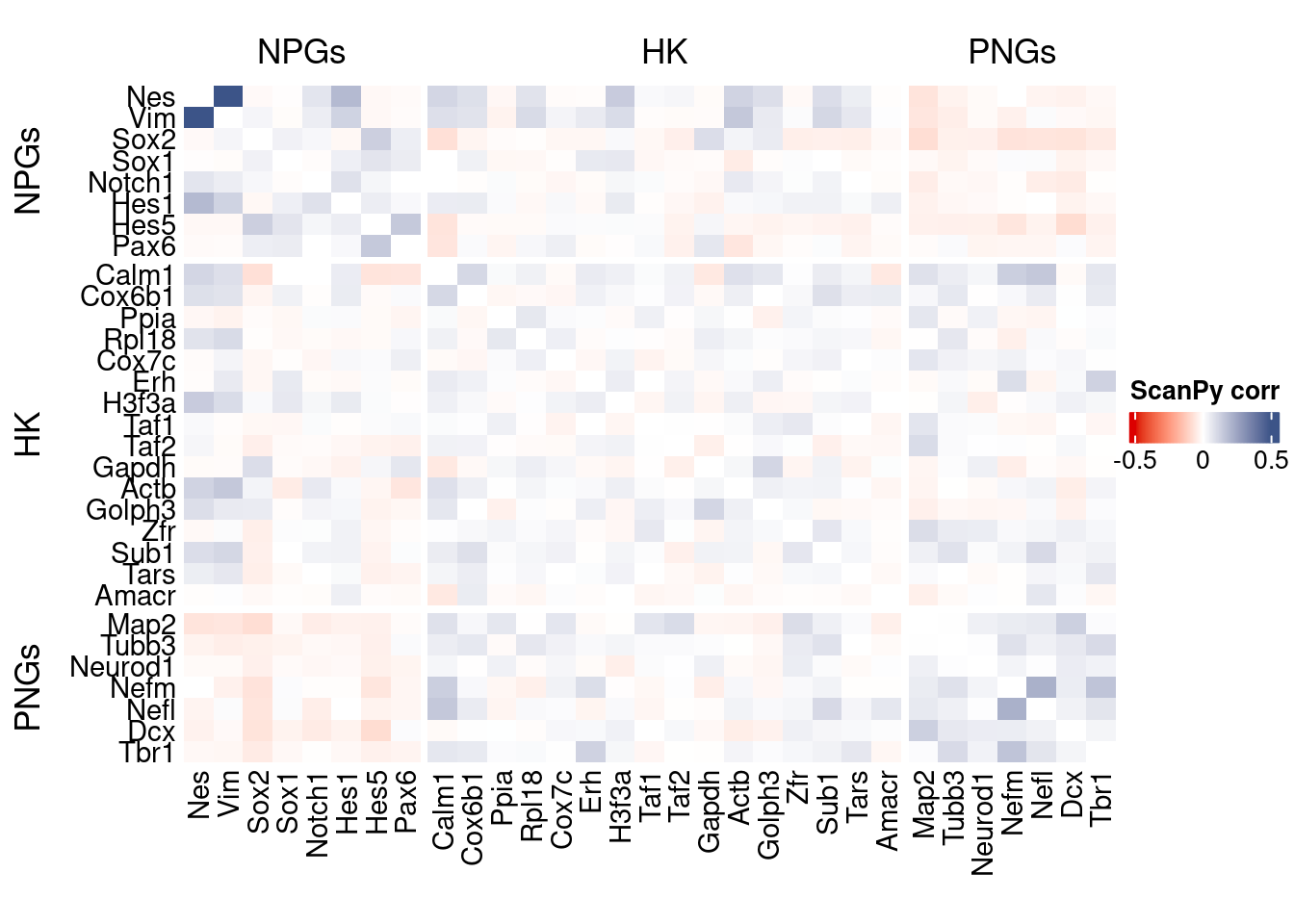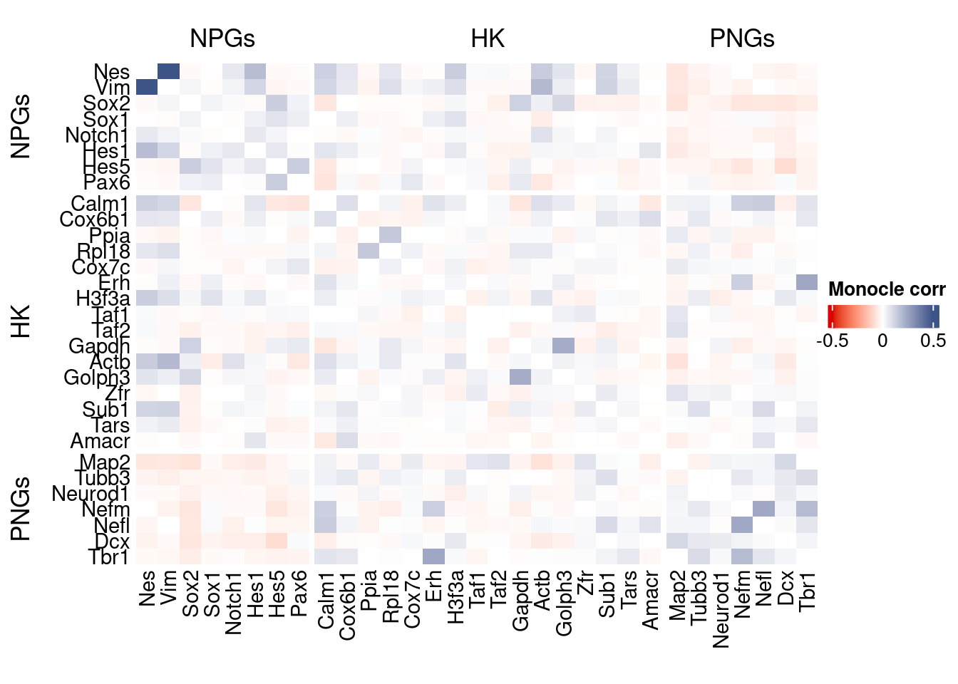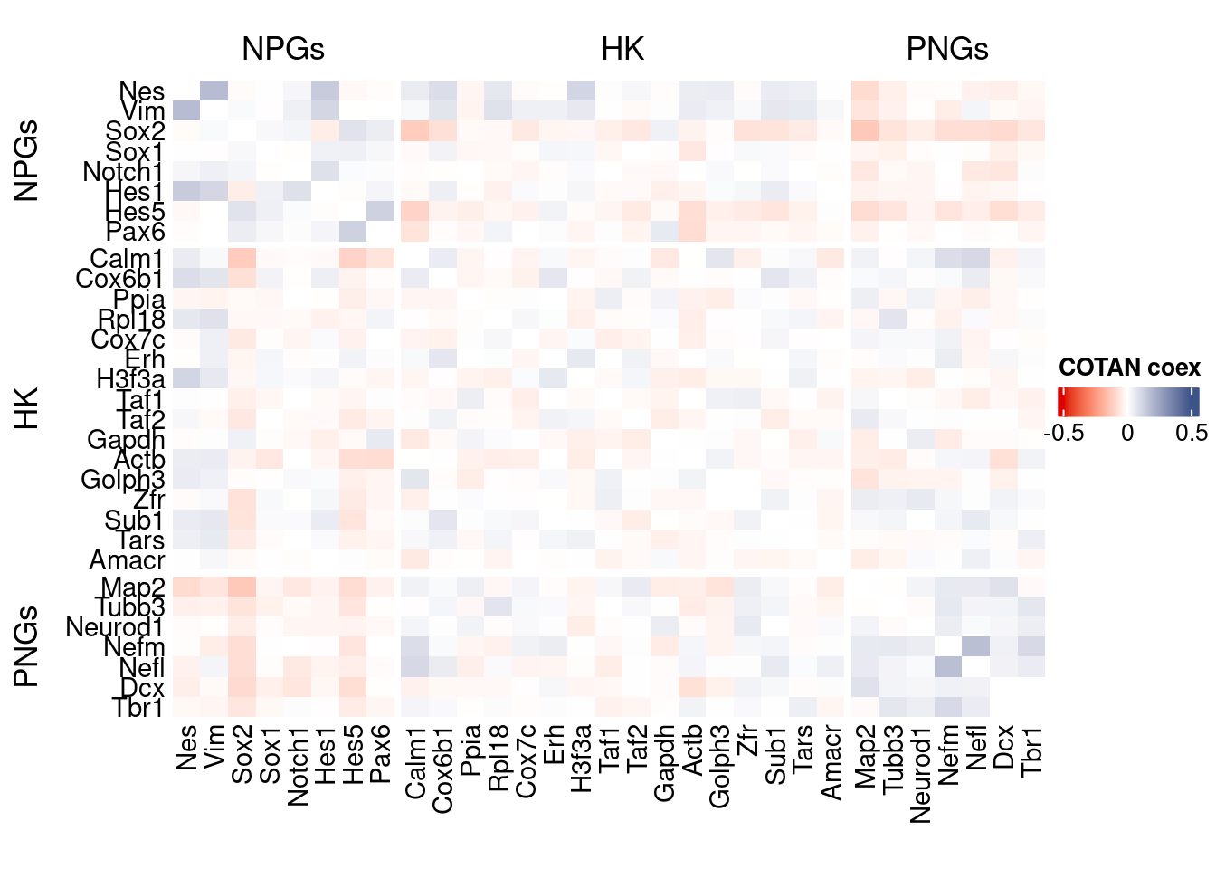 coexMat <- getGenesCoex(obj)[c(genesList$NPGs,genesList$hk,genesList$PNGs),c(genesList$NPGs,genesList$hk,genesList$PNGs)]