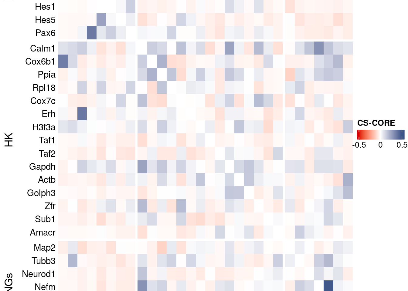 c("Calm1", "Cox6b1", "Ppia", "Rpl18", "Cox7c", "Erh", "H3f3a",