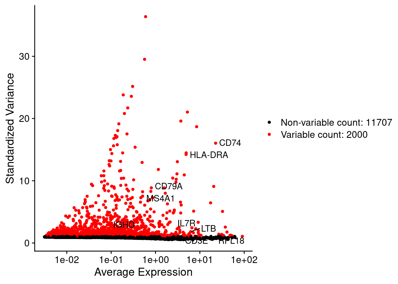 c("PAX5","MS4A1","CD19","CD74","CD79A","IGHD","HLA-DRA"),