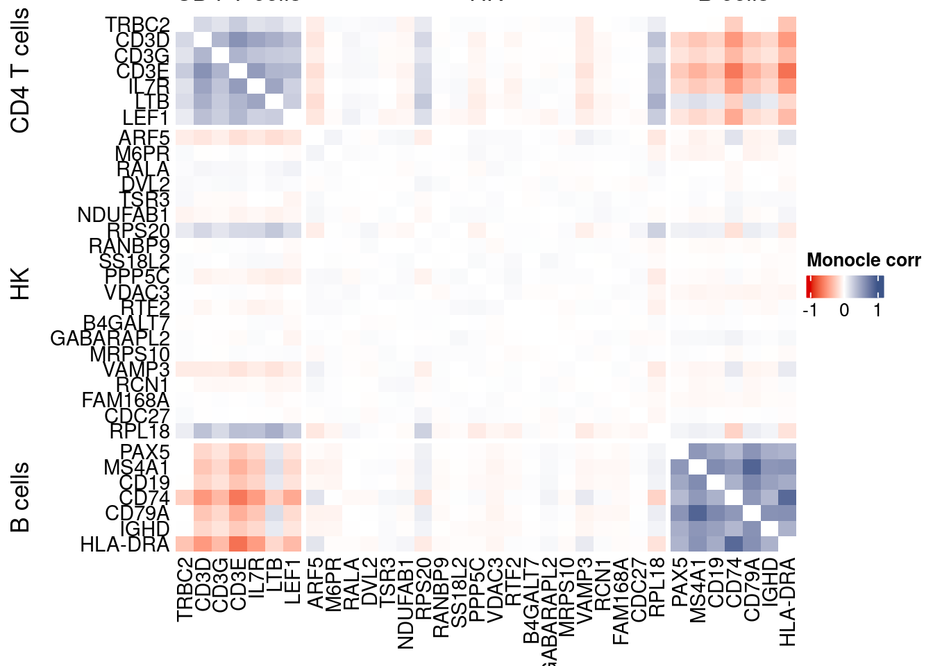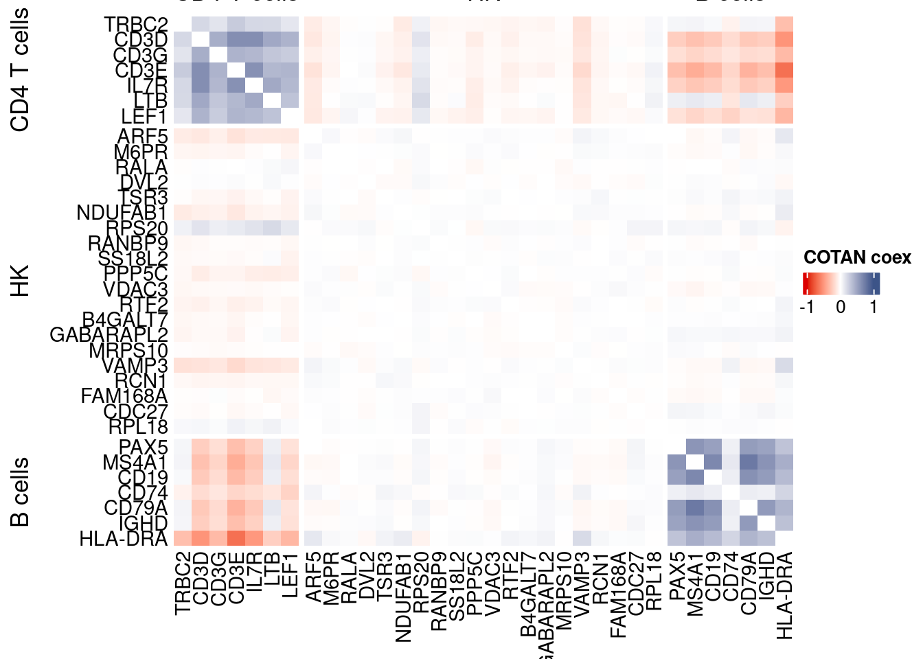 coexMat <- getGenesCoex(obj)[c(genesList$`CD4 T cells`,genesList$hk,genesList$`B cells`),c(genesList$`CD4 T cells`,genesList$hk,genesList$`B cells`)]