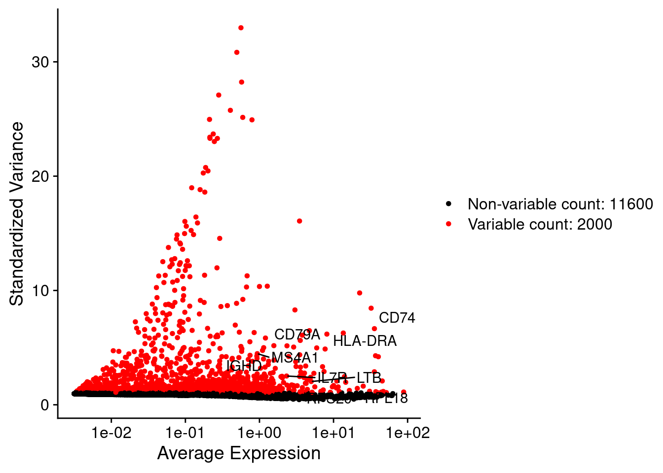 c("PAX5","MS4A1","CD19","CD74","CD79A","IGHD","HLA-DRA"),