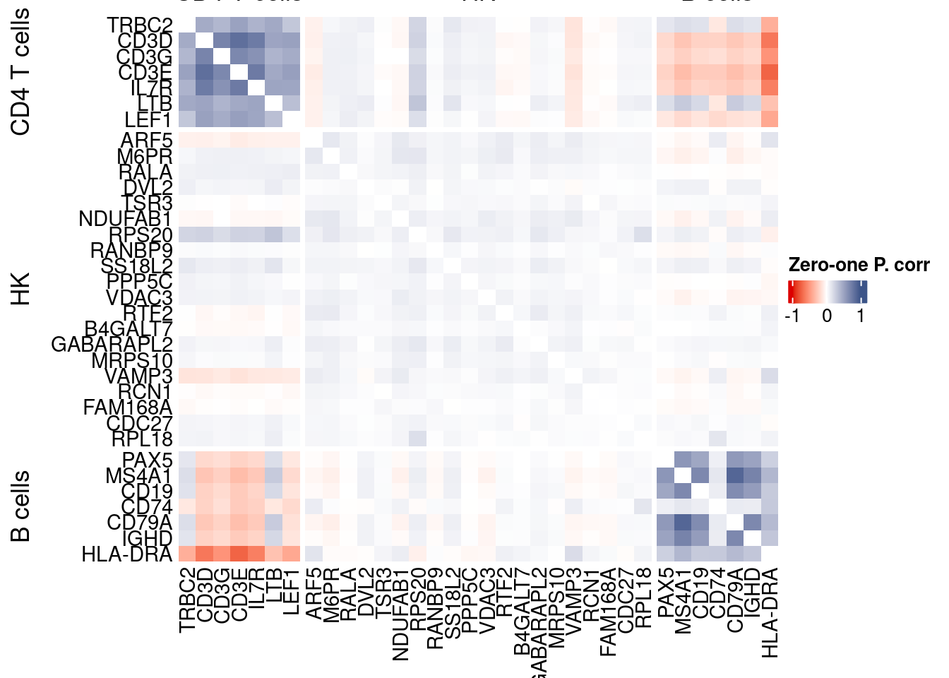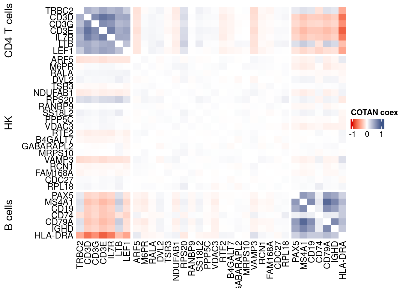 coexMat <- getGenesCoex(obj)[c(genesList$`CD4 T cells`,genesList$hk,genesList$`B cells`),c(genesList$`CD4 T cells`,genesList$hk,genesList$`B cells`)]