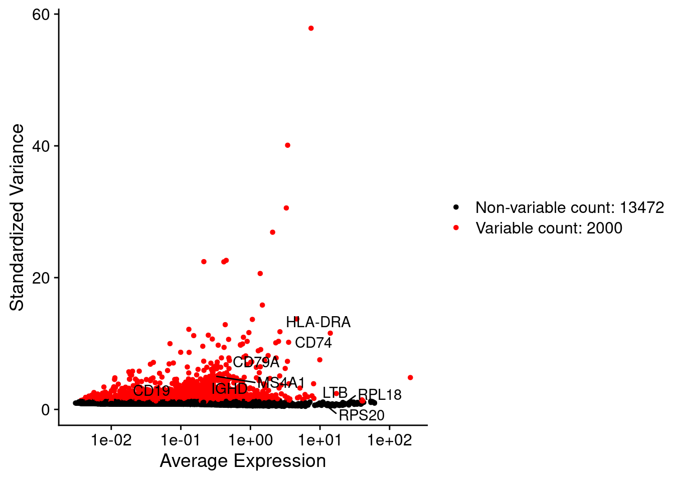 c("PAX5","MS4A1","CD19","CD74","CD79A","IGHD","HLA-DRA"),