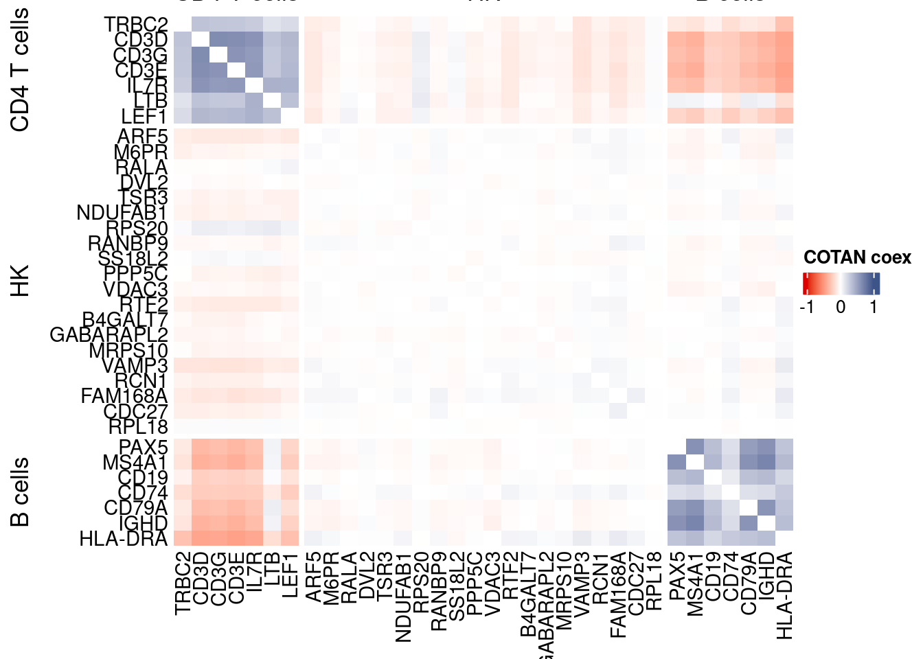 coexMat <- getGenesCoex(obj)[c(genesList$`CD4 T cells`,genesList$hk,genesList$`B cells`),c(genesList$`CD4 T cells`,genesList$hk,genesList$`B cells`)]
